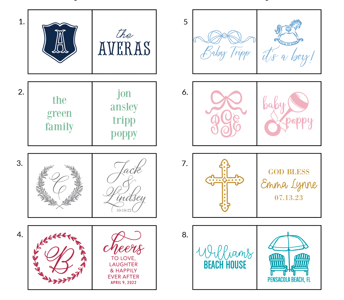 Please select quantity and in the text boxes below list neoprene color, imprint color, and design description (or if selecting one of my pre-made designs, state the number and details for the design). I will email or text you with a proof before placing final order. Give at least 3 weeks lead time for orders. If needed sooner or if you need a different quantity please contact me personally. Let me know if you have any questions: 850.791.3355 or ansley.green@yahoo.com
